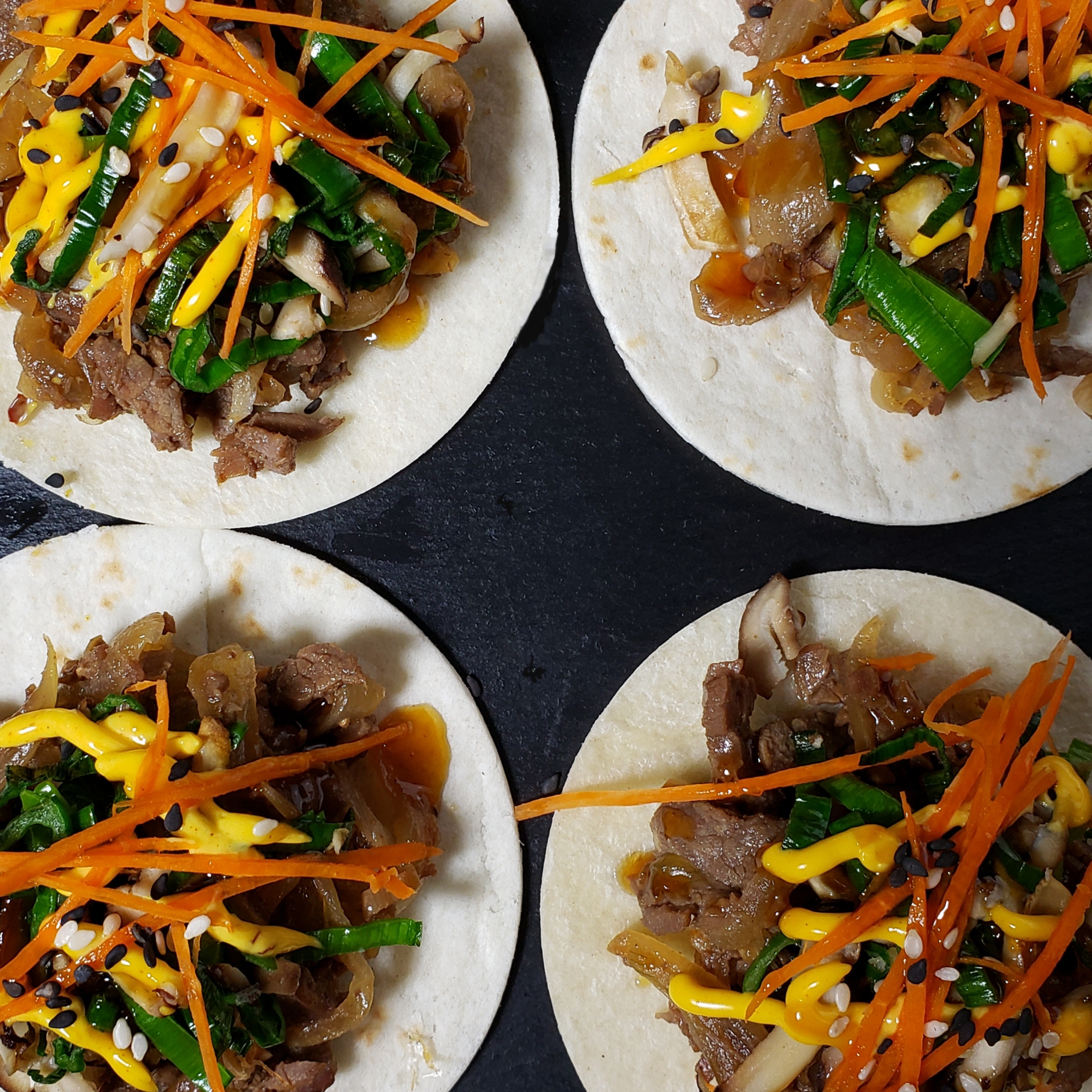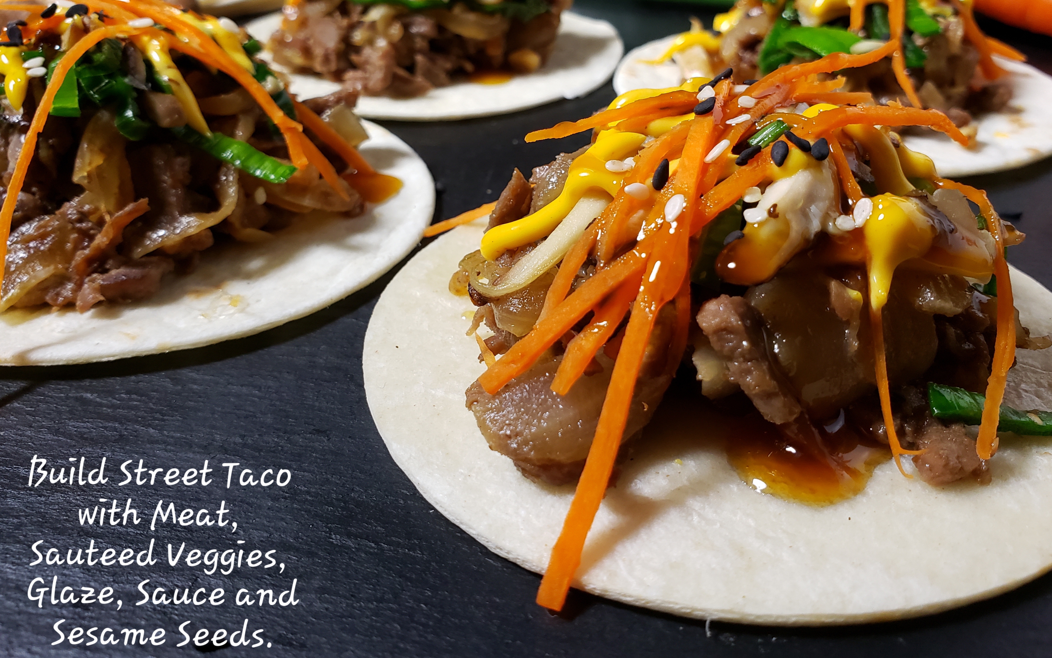 These mini tacos are small enough for the tiniest fingers but tasty enough to keep biggest of appetites satisfied. Tender, juicy steak pairs perfectly with the Sweet Soy Glaze and Spicy Sauce.